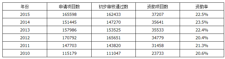 历年的资助率维持在22%左右。今年与去年相比略有下降,但申请项目数较去年更多。