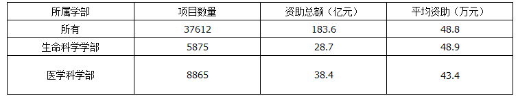 生命科学学部、医学科学学部总项目数量与资助金额: