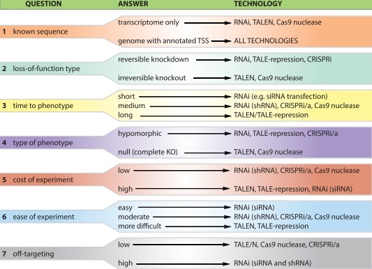 RNAi、TALEN和CRISPR选择指南(见下图)