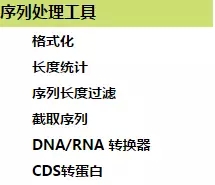 可以做一些格式化处理、长度统计及CDS转蛋白等等。